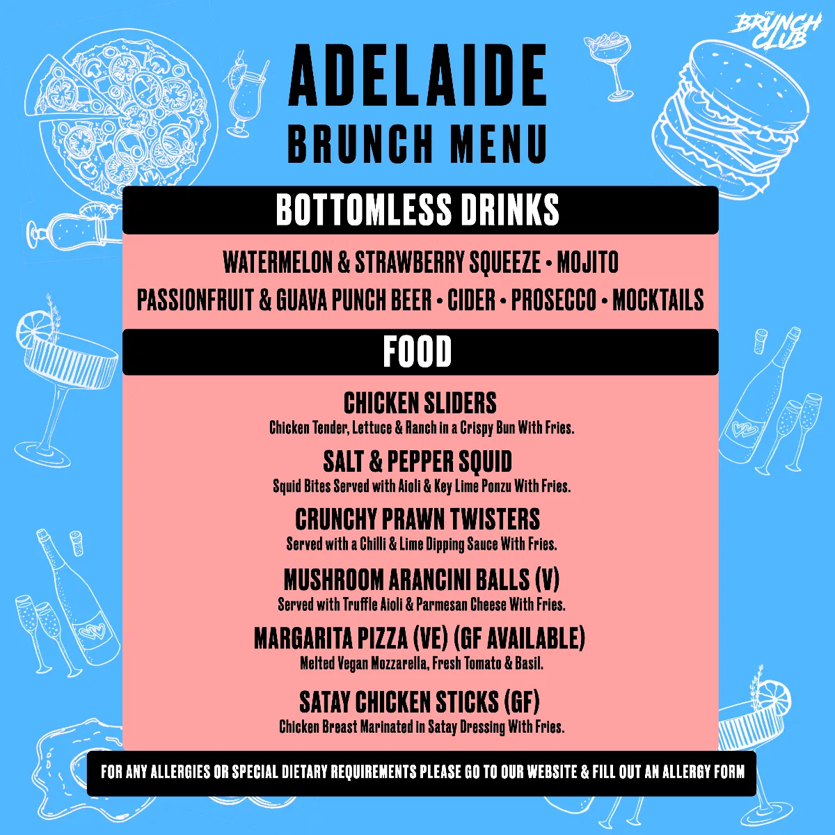 · Bottomless Brunch Ticket Holders Are Entitled To One Meal Choice Per Customer. (Please See The Menu For Details, Bottomless Drinks Are Served One Drink At A Time, Timings Cannot Be Extended)